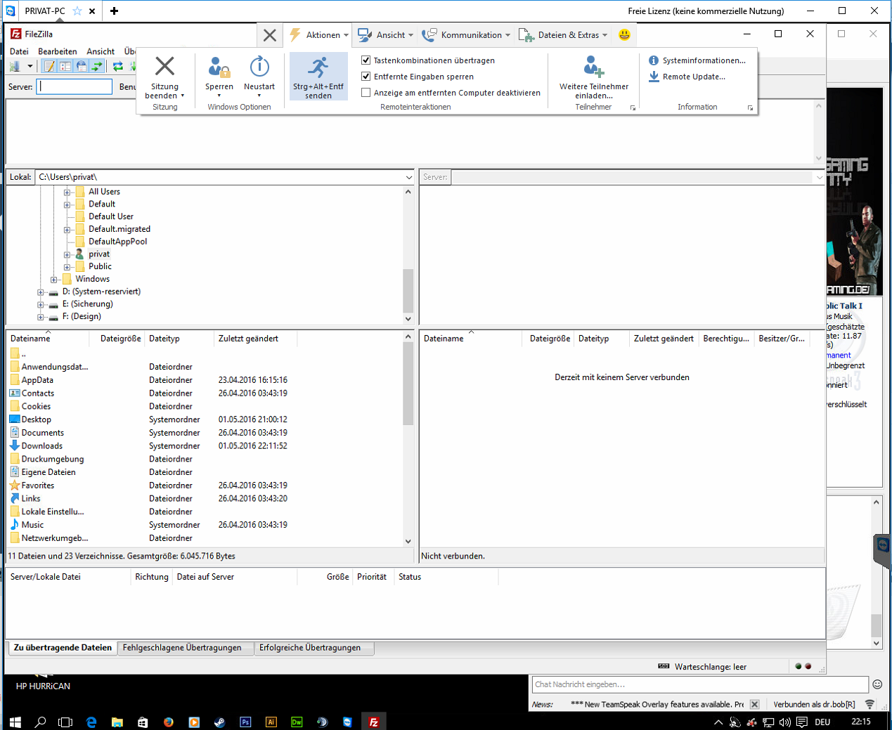 Teamspeak, 5 Mozilla Tabs, Teamviewer mit 2 Mitspitzlern xD, Steam