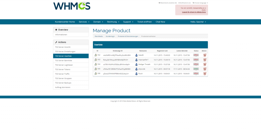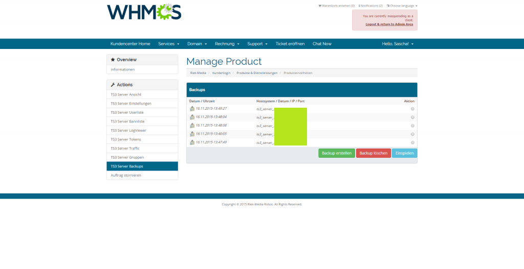 Weihnachtsaktion : Aktuell erhalten Sie 15% Rabatt auf unser WHMCS Modul. Benutzen Sie folgenden Code : G3FE2FO7VY bei der Bestellung.