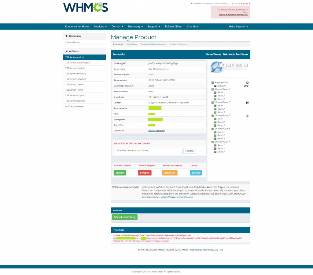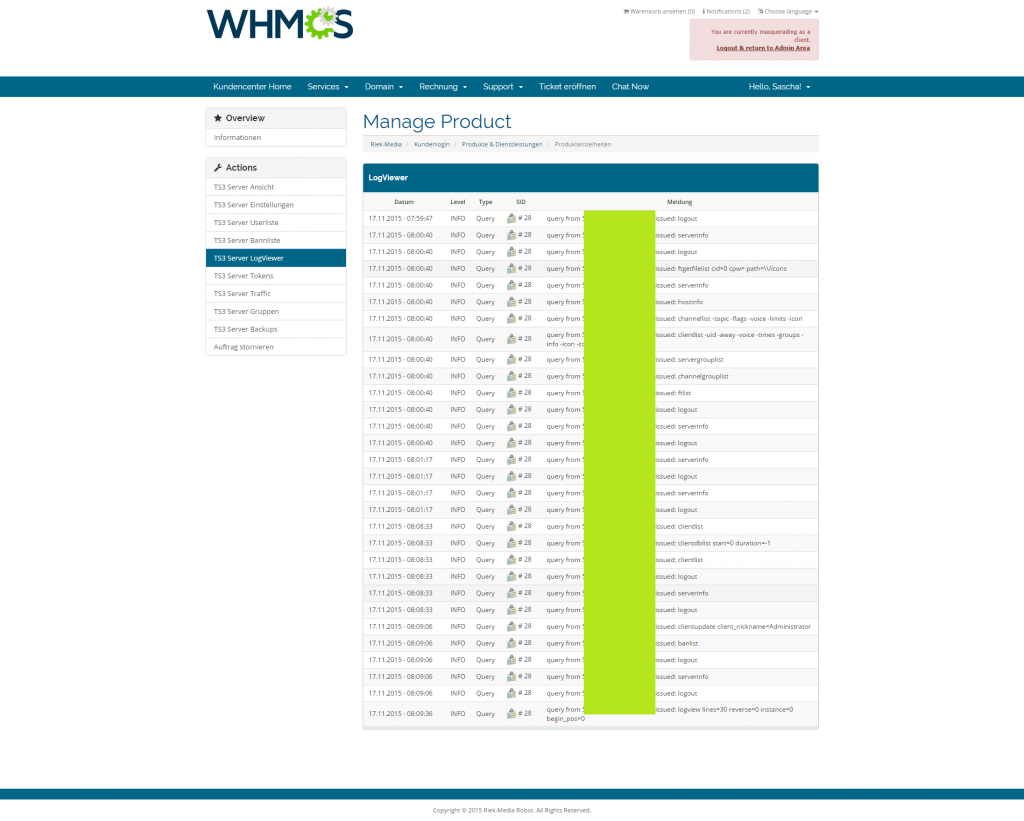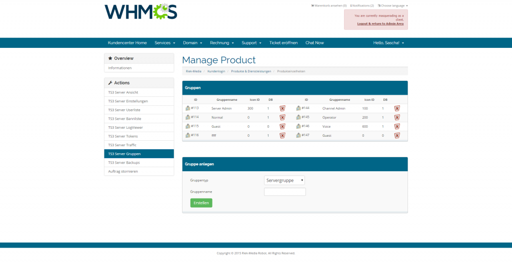 hiermit wollen wir Sie darüber informieren, dass für unsere Software WHMCS TeamSpeak 3 Modul ein neues Update V4.2.0 zur Verfügung steht. Das Update beinhaltet einige neue Funktionen und Bugfixes. Bitte beachten Sie die neu hinzugefügten Punkte in der Installationsanleitung. Für Fragen stehen wir Ihnen gerne via Ticket zur Verfügung.