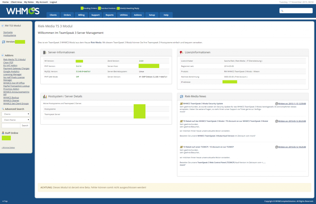 WHMCS TS3 Modul für 69,95€ Einmalig