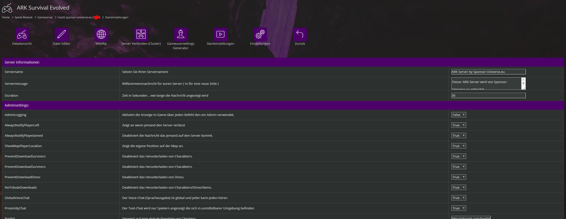 Wenn möglich ein Interface um den Server einstellen zu können.