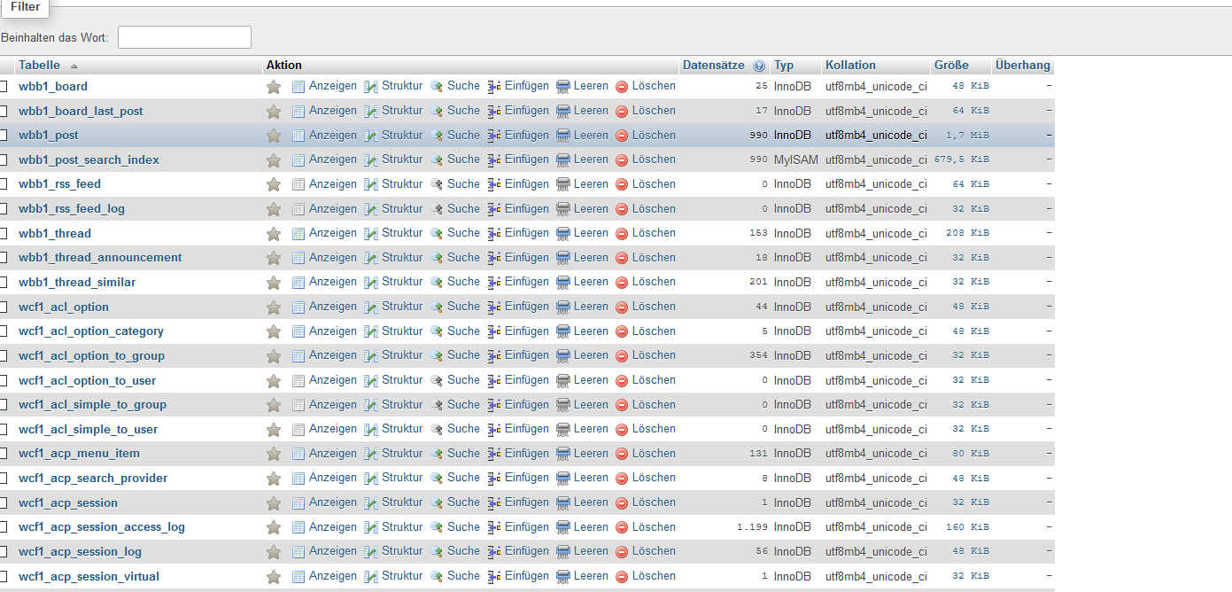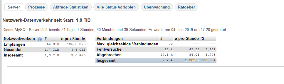innodb_flush_log_at_trx_commit 2 per phpmyadmin eingestellt was in ACP Als empfehlung stand.