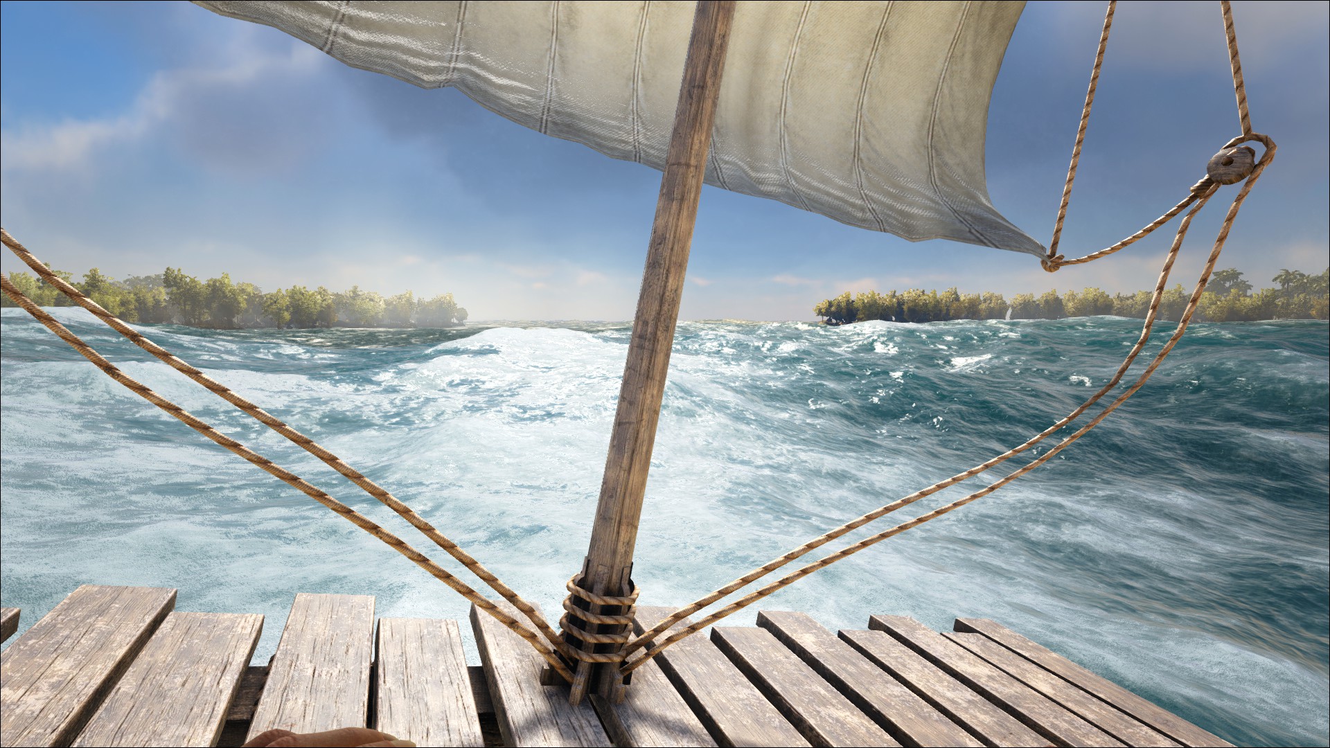 Schiff und setz die Segel und erkunde die Welt und plündere deren Schätze und