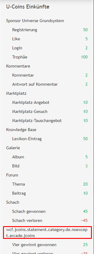 auf dieser Seite: https://sponsor-universe.eu/core/statement-list/ in der Sidebar unter U-Coins Einkünfte, ist ein Fehler im Sprachtemplate, da wird: "wcf.jcoins.statement.category.de.noexcept.arcade.jcoins" anstatt Arcade angezeigt.