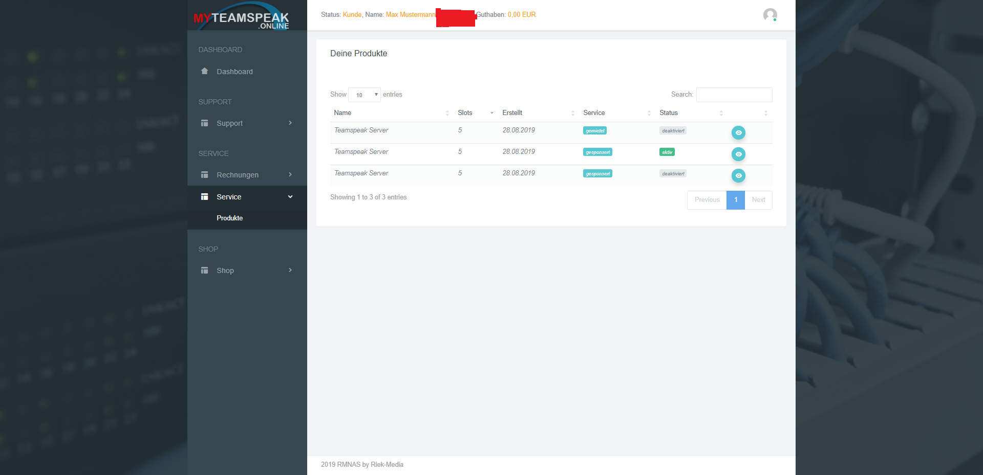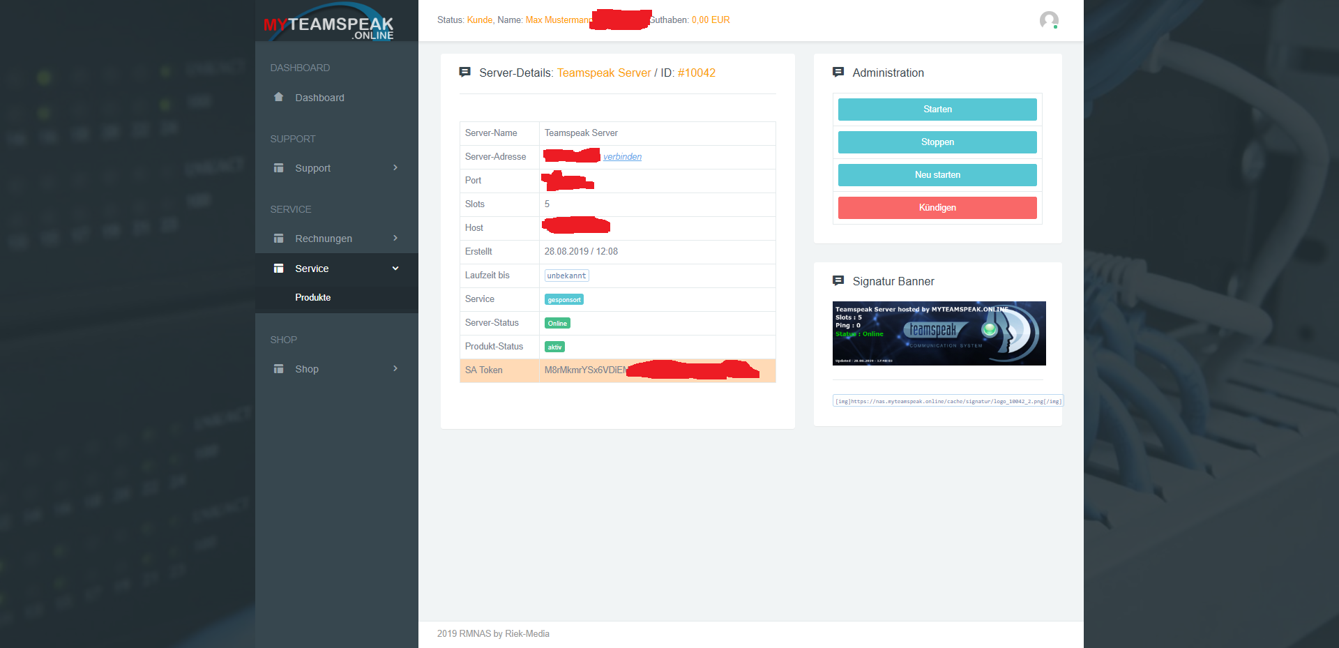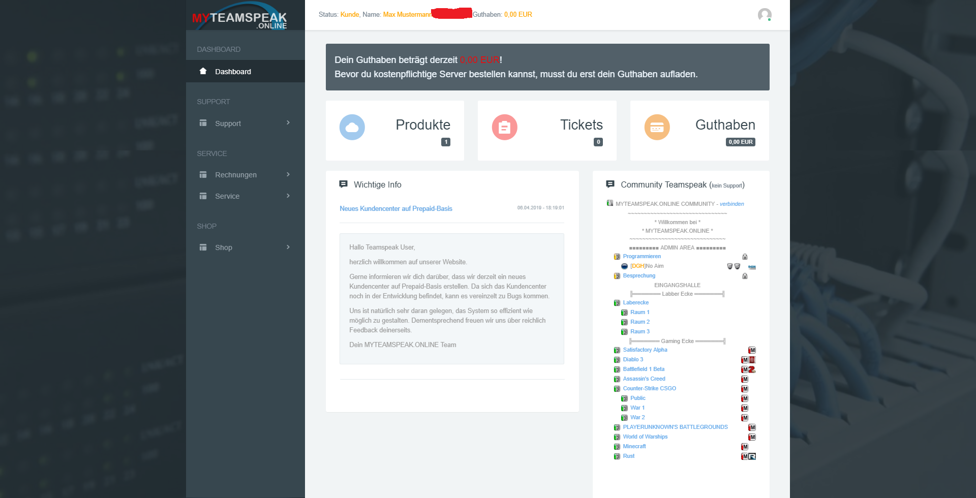 - Supportanfragen via Ticket, E-Mail, LiveChat, Teamspeak