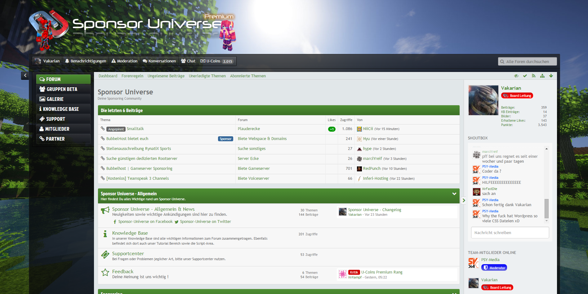 Minecraft Style mit den Avataren der Administratoren im Logo