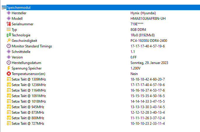 Mein Speichermodul gibt folgende Daten an (SiSoftSandra):