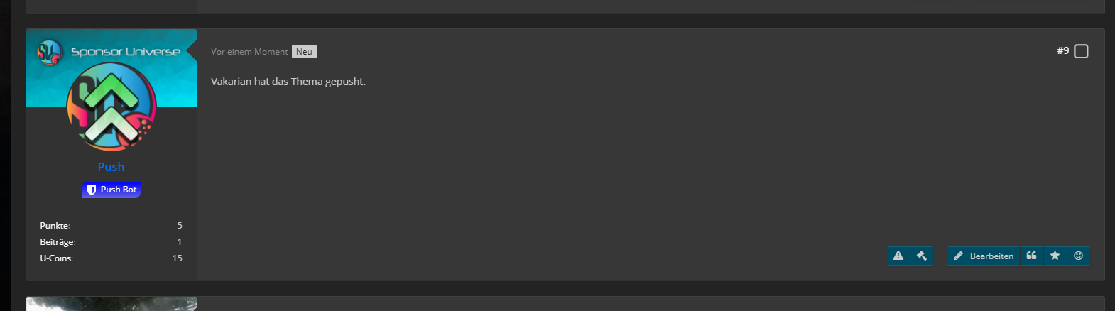 - Updates zu Themen sind im ersten Beitrag des Themas unterzubringen, anschließend kann über die Push Funktion das Thema gepusht werden.