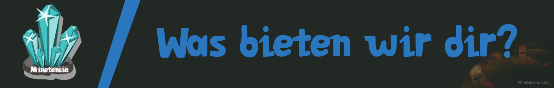 Minetensia.com ist ein Mix aus Roleplay, Citybuild, Freebuild und Survival in einem Modi. Wir haben uns das Ziel gesetzt, unseren Spielern ein einzigartiges und qualitativ hochwertiges Spielerlebnis mit regelmäßigen Updates zu bieten.