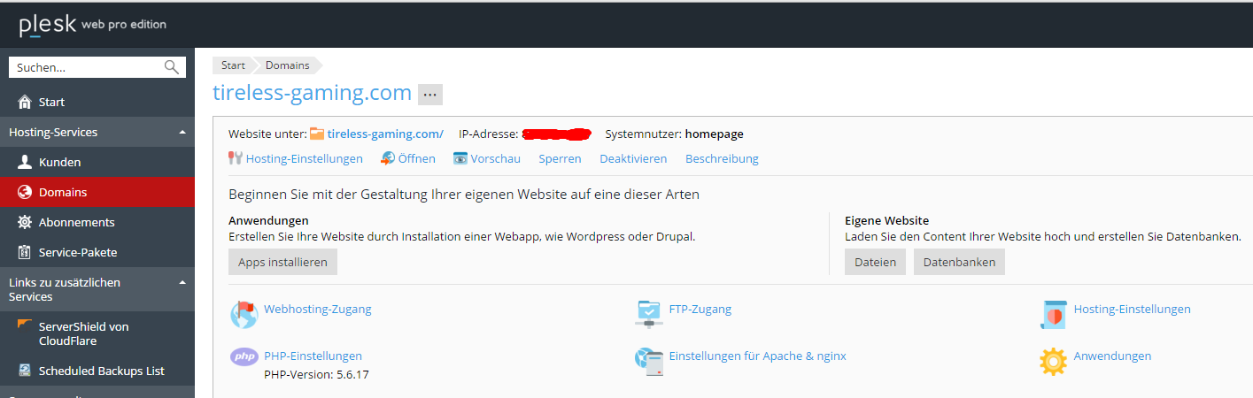 I have at my Rootserver Plesk installed has the domain tripped in. That can you see here in the screenshot