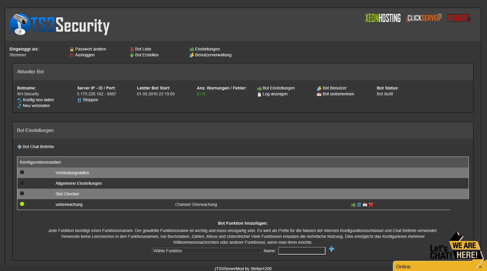 - Alle Funktionen des Bots können einzeln ein- und ausgeschaltet werden.