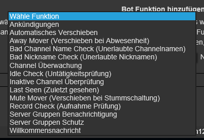 - Clients die eine Aufnahme starten in einen bestimmten Channel bewegen oder vom Server kicken.