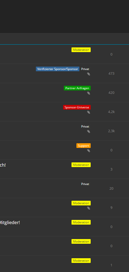 Das Sponsor Universe sollte ursprünglich kein Sponsor Forum in dem sinne werden, hat sich dann aber doch dann sponanerweise in die Richtung entwickelt (lange Geschichte). Auch wenn es nicht geplant und auch nie das Ziel war, haben wir uns denke ich mal als ernst zunehmender Konkurrent entwickelt. Dennoch respektiere ich auch die Arbeit die in den beiden anderen Foren geleistet wird.