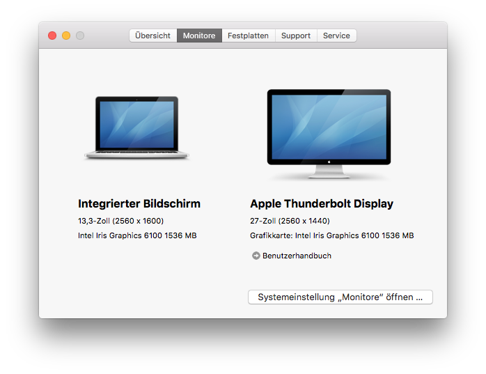 Es gibt doch mehrere Thunderbolt-Anschlüsse? Ich hab das bisher noch nicht ausprobiert, ob man mehrere anschließen kann. Kommt bestimmt auch ein bisschen auf die Hardware vom Rechner an.