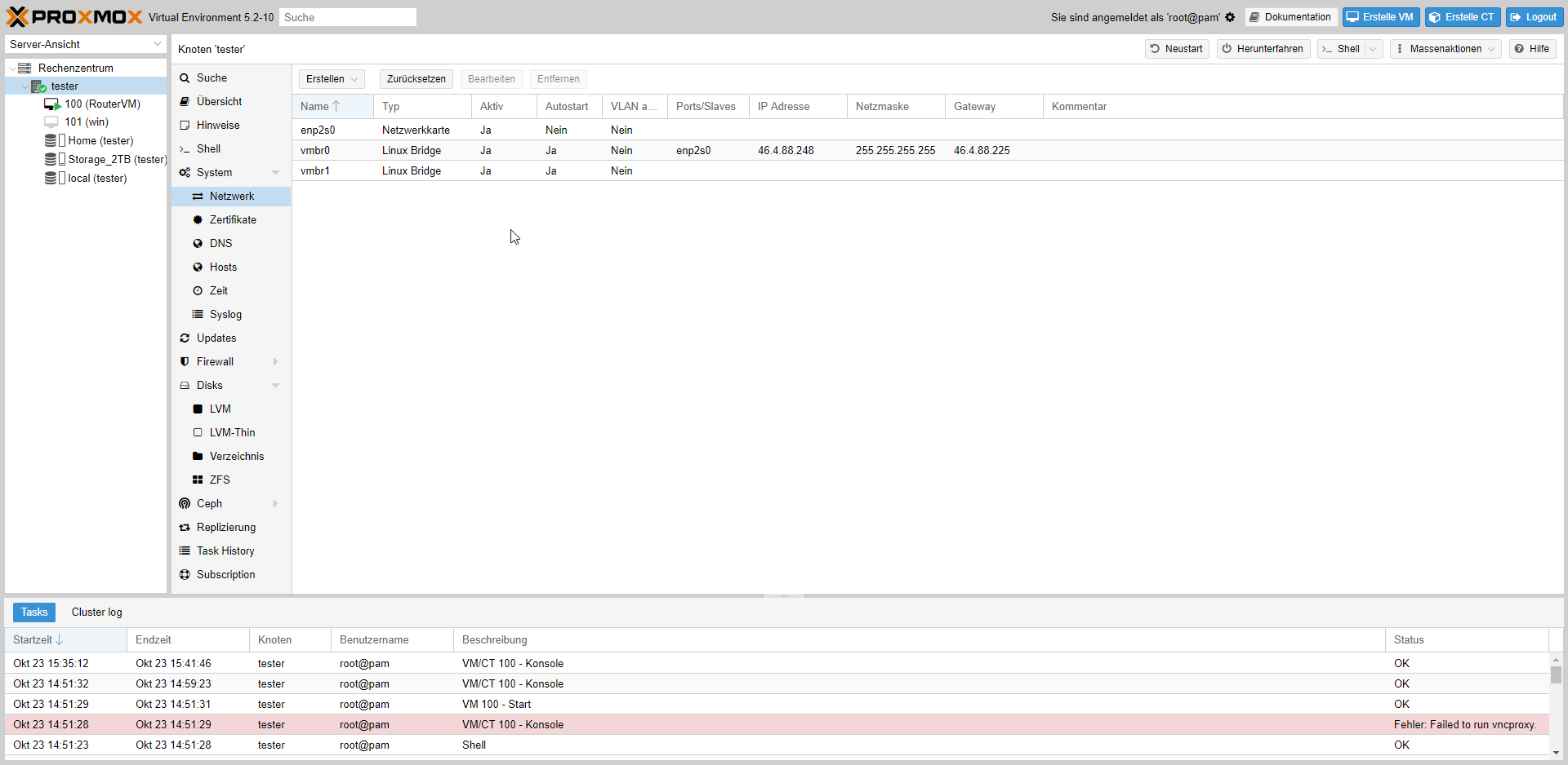 3. Das Routing ( Bridget auf dem Hostsystem wo Proxmox drauf ist )
