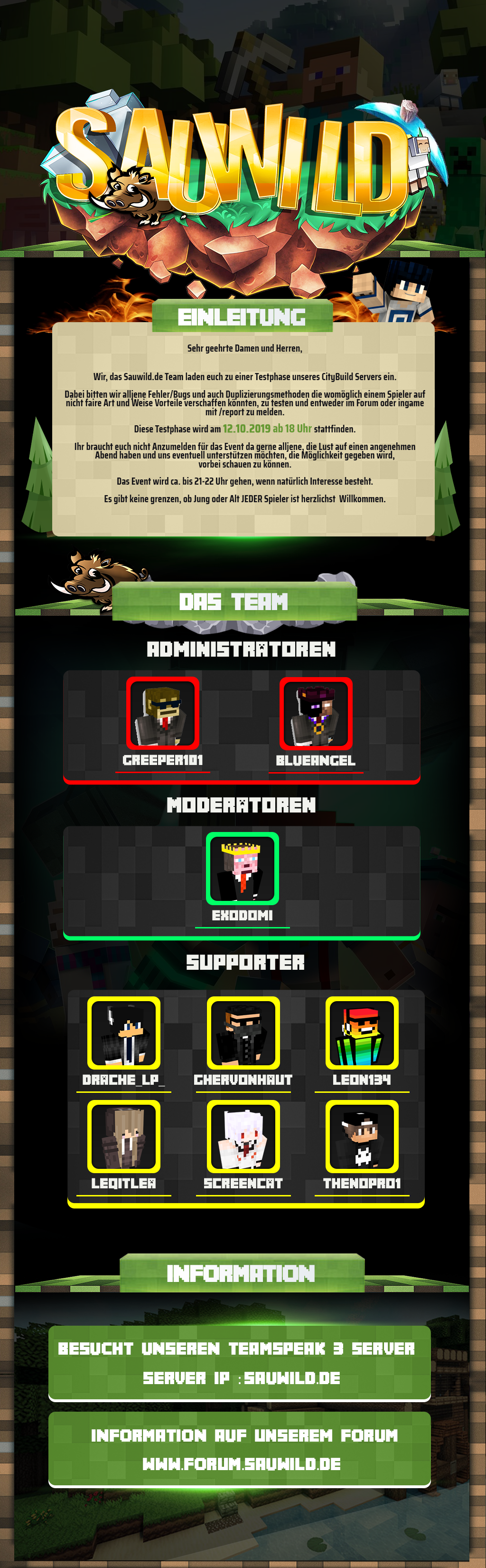 Wir, das Sauwild.de Team laden euch zu einer Testphase unseres Citybuild Servers ein.