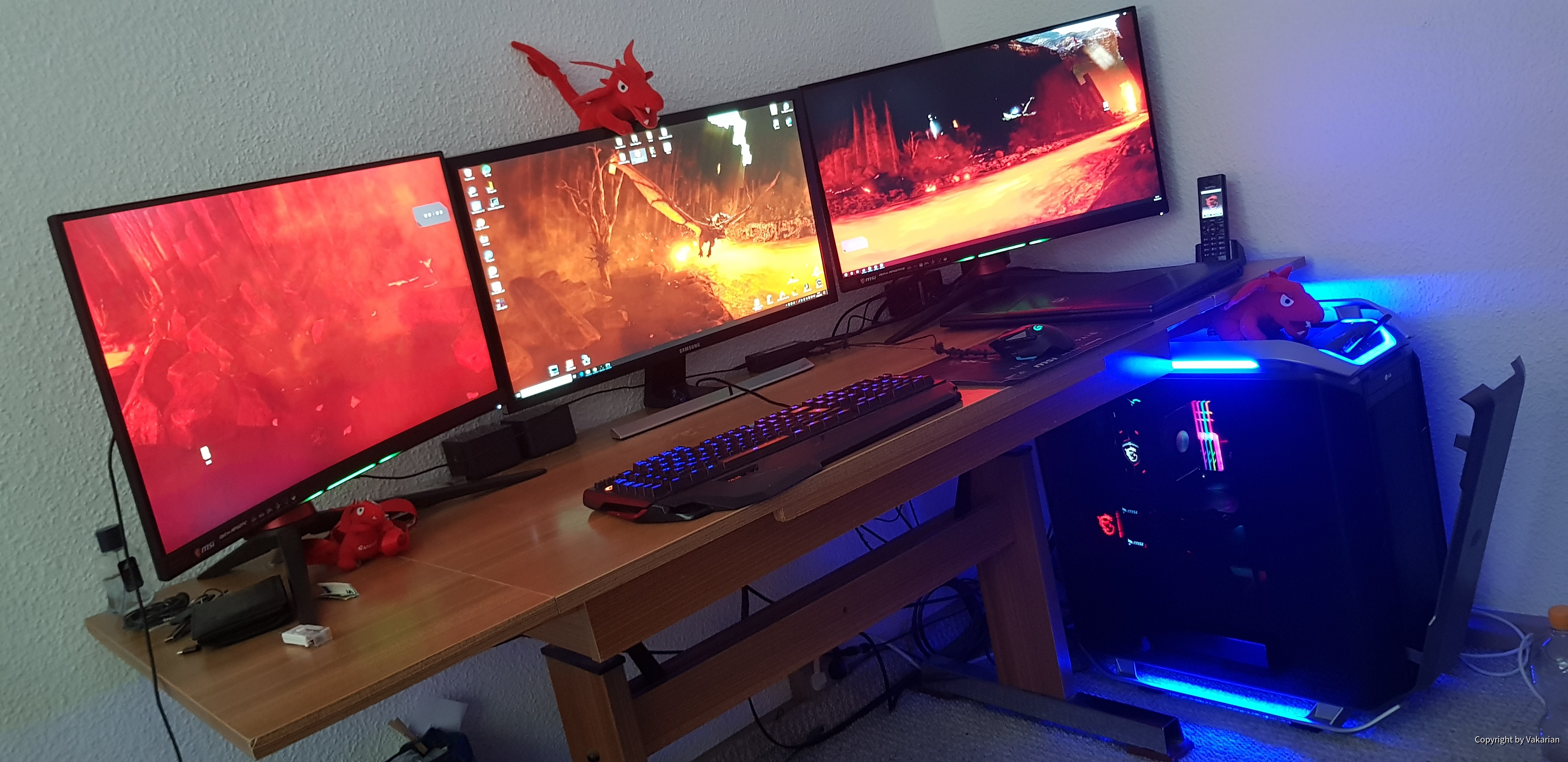 Warum hast du die Monitore nicht an der Wand? Habe meine auch alle an der Wand, hat sich bewährt.